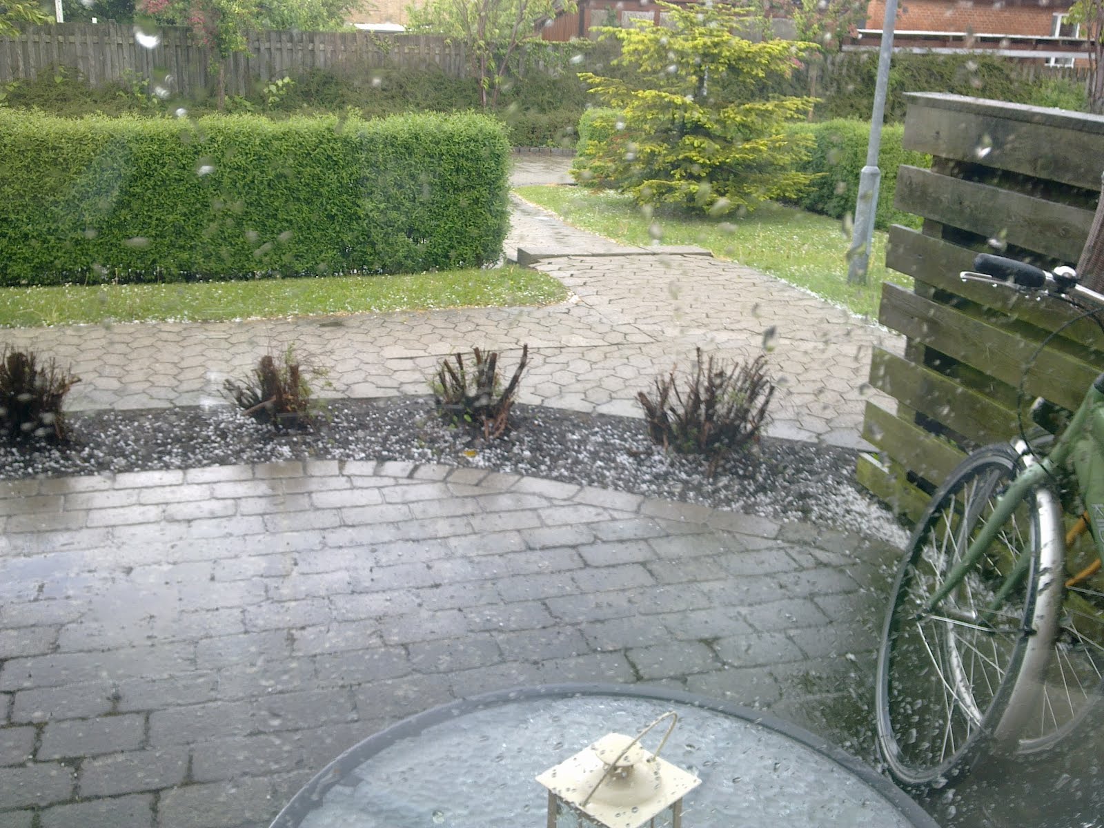 For 2 uger siden blev der sat stillads op omkring huset her, fordi vi skal have nyt tag. Det er et værre roderi og larm, og jeg kan ikke rigtig bruge min have. Man ved ikke hvornår man får et eller andet i hovedet, så jeg glæder mig til det bliver færdigt. Der går nok en måneds tid mere med det, for nabohuset i forlængelse af den række jeg bor i, skal også have tag og så skal stilladset være inde hos mig også. Desværre!